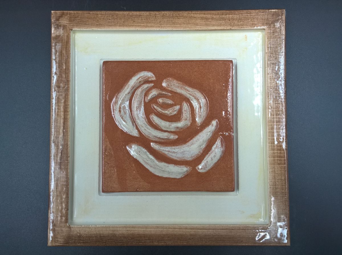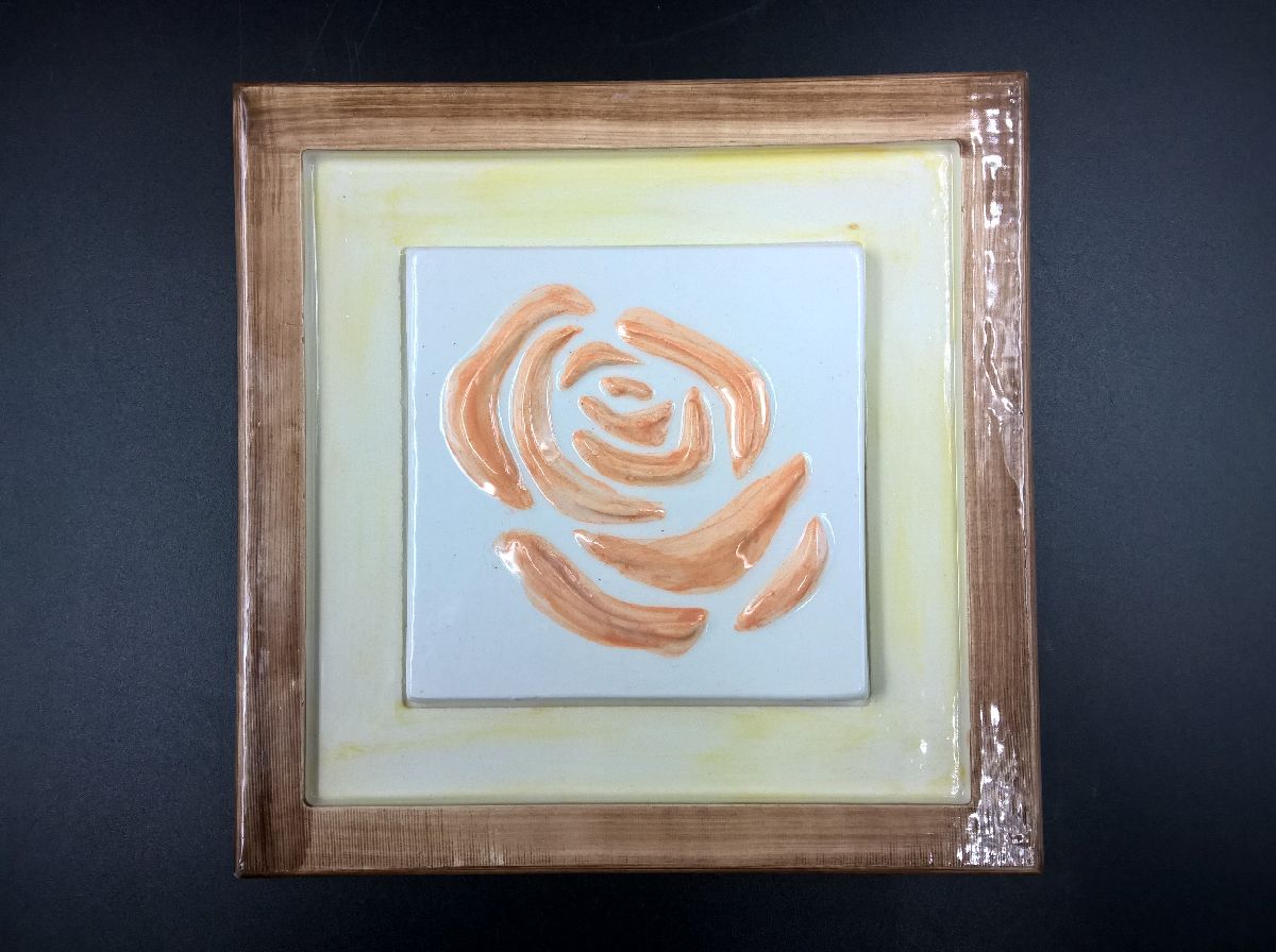 Komplet treh slik vrtnic v različnih barvah. Slike so v izdelane iz keramike, tudi okvirji.